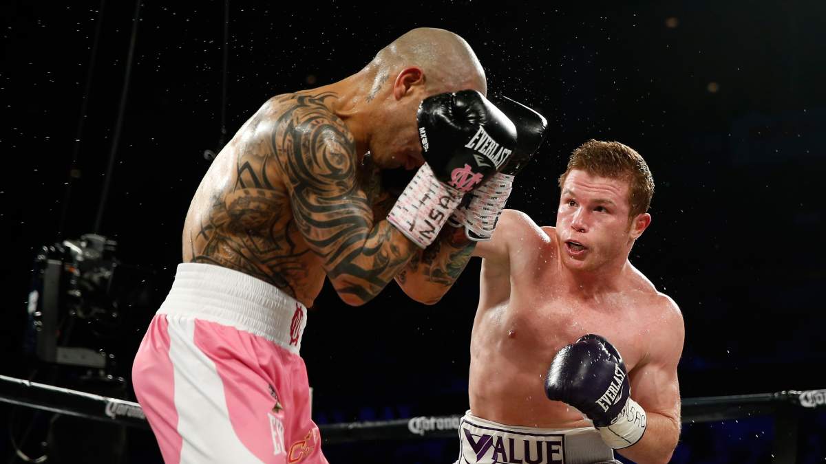 Canelo Alvarez lanza una izquierda a Miguel Cotto durante su pelea de peso mediano. (Getty)