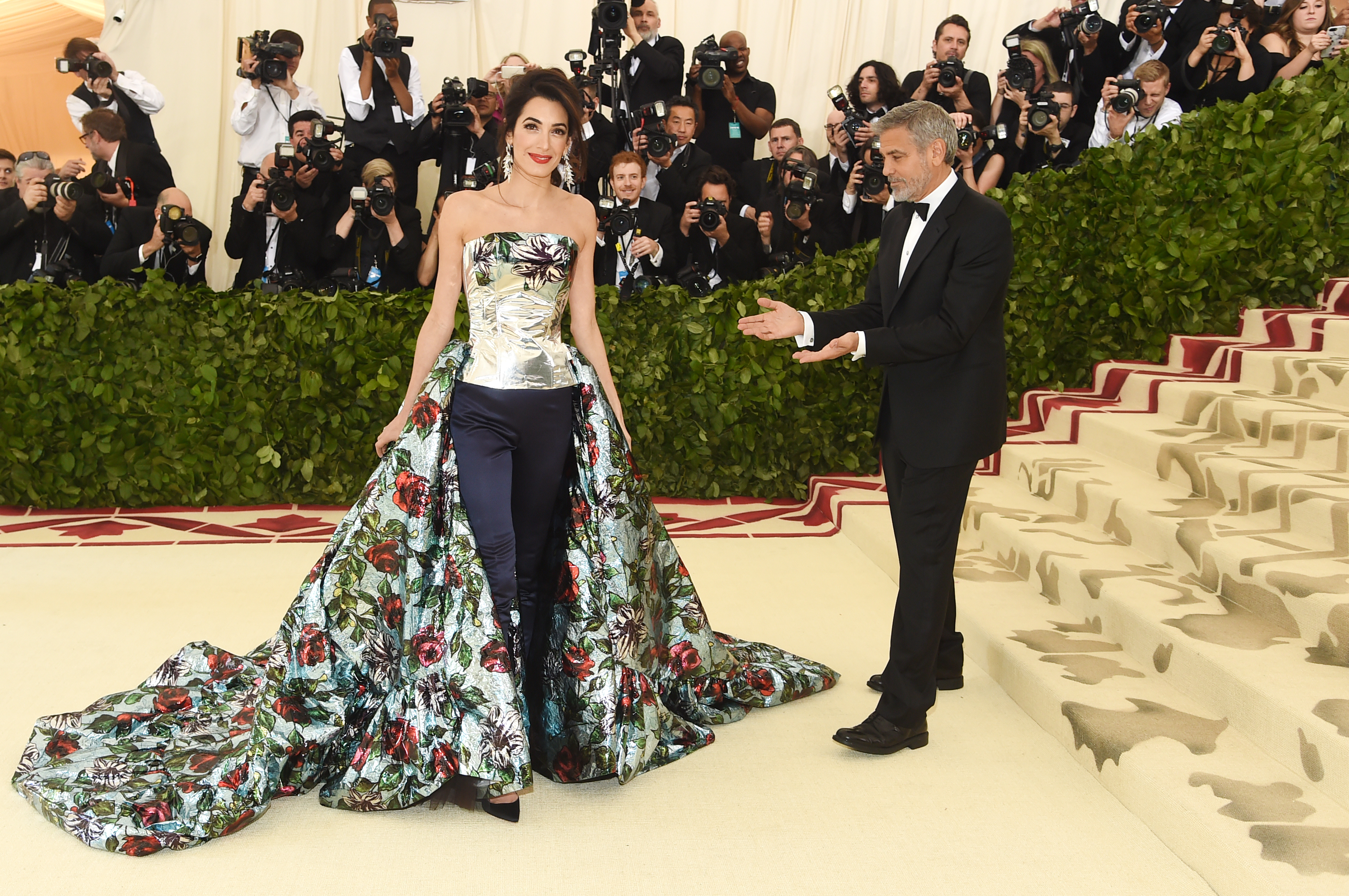 Amal Clooney y George Clooney en la alfombra roja del Met Gala 2018, en la ciudad de Nueva York, 7 de mayo de 2018.