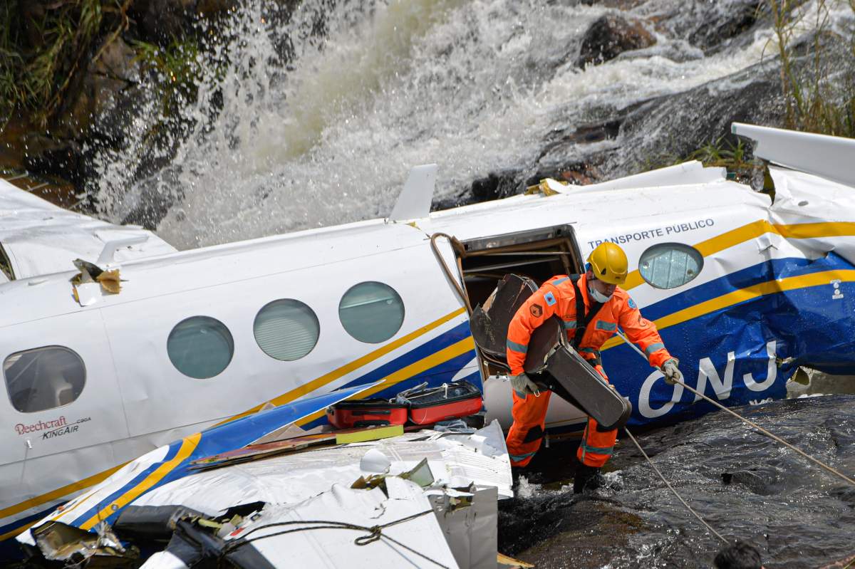 La nave fue descrita como un aerotaxi bimotor Beech, y hasta el momento se desconocen las causas exactas por las que la nave se precipitó al suelo, en inmediaciones de un río en la región de Piedade de Caratinga a eso de las 3:30 de la tarde del viernes.