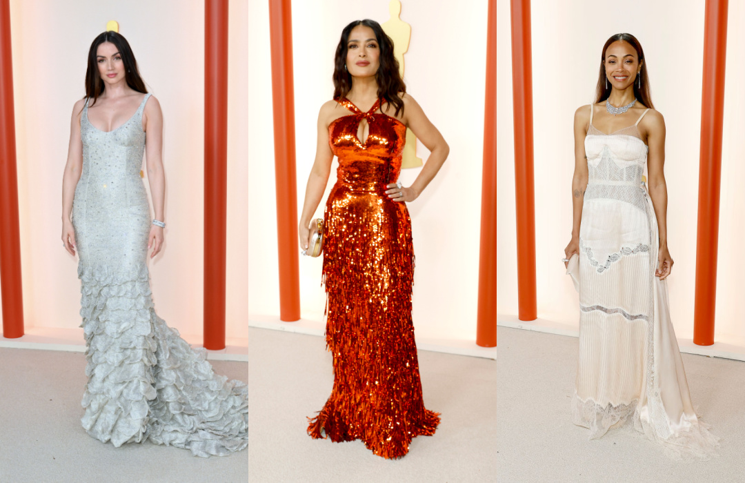 Los Oscars 2023 comenzaron como ya es costumbre con el desfile de los nominados por la alfombra, que este año no es roja sino champaña. La mayoría sacaron sus mejores galas y es un orgullo decir que los latinos estuvieron entre los mejores vestidos comenzando por las reinas de la moda Ana de Armas, Salma Hayek, Zoe Saldaña y Sofía Carson y terminando por el papá de la internet, el chileno Pedro Pascal, el protagonista de The Mandalorian.