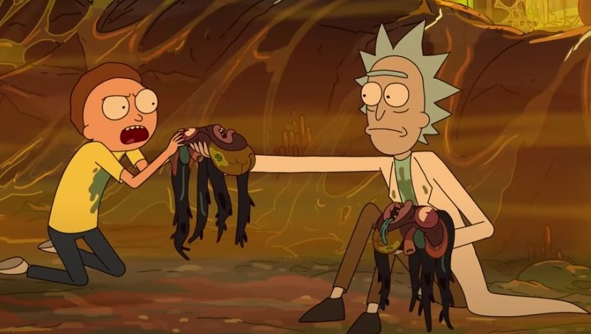 Así que con esa escena en mente, el final del episodio 7 de la temporada 4 es incluso más divertido. Rick pensó que iba a morir junto con Morty — ambos pensaron que tenían huevos dentro de ellos y ambos estaban haciendo daño.