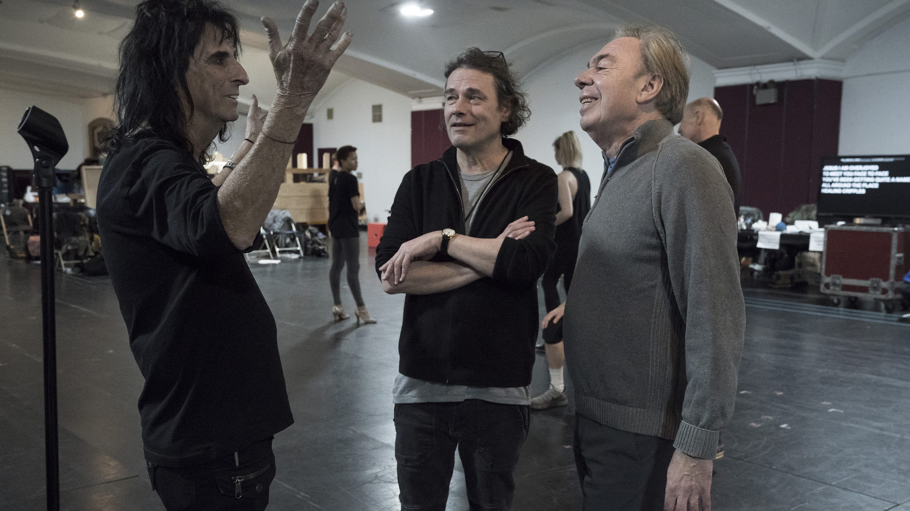 Interesado en aprender más sobre el proceso de ensayo con imágenes que muestran las fotos detrás de escenas de ¿Vive Jesucristo Superstar? Sigue leyendo. Rehearsal — Imágenes: (l-r) Juan Leyenda como Jesús, Alice Cooper como Rey Herodes
