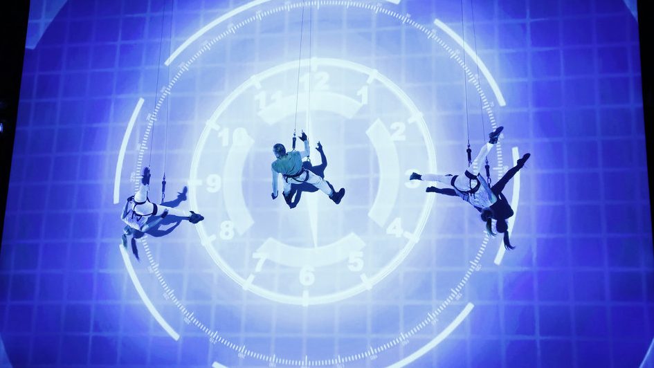 Una foto promo de la actuación de Bencha Theater, lanzada antes del episodio de esta noche por NBC, muestra a tres de los miembros del grupo suspendidos en una cuerda y arnés mientras “encienden” una pared vertical que tiene un reloj de aspecto futurista proyectado sobre ella. Esto todavía se asemeja a un video compartido de la actuación del grupo 2013 en Bankok, publicado en Youtube por Marc van Laere.